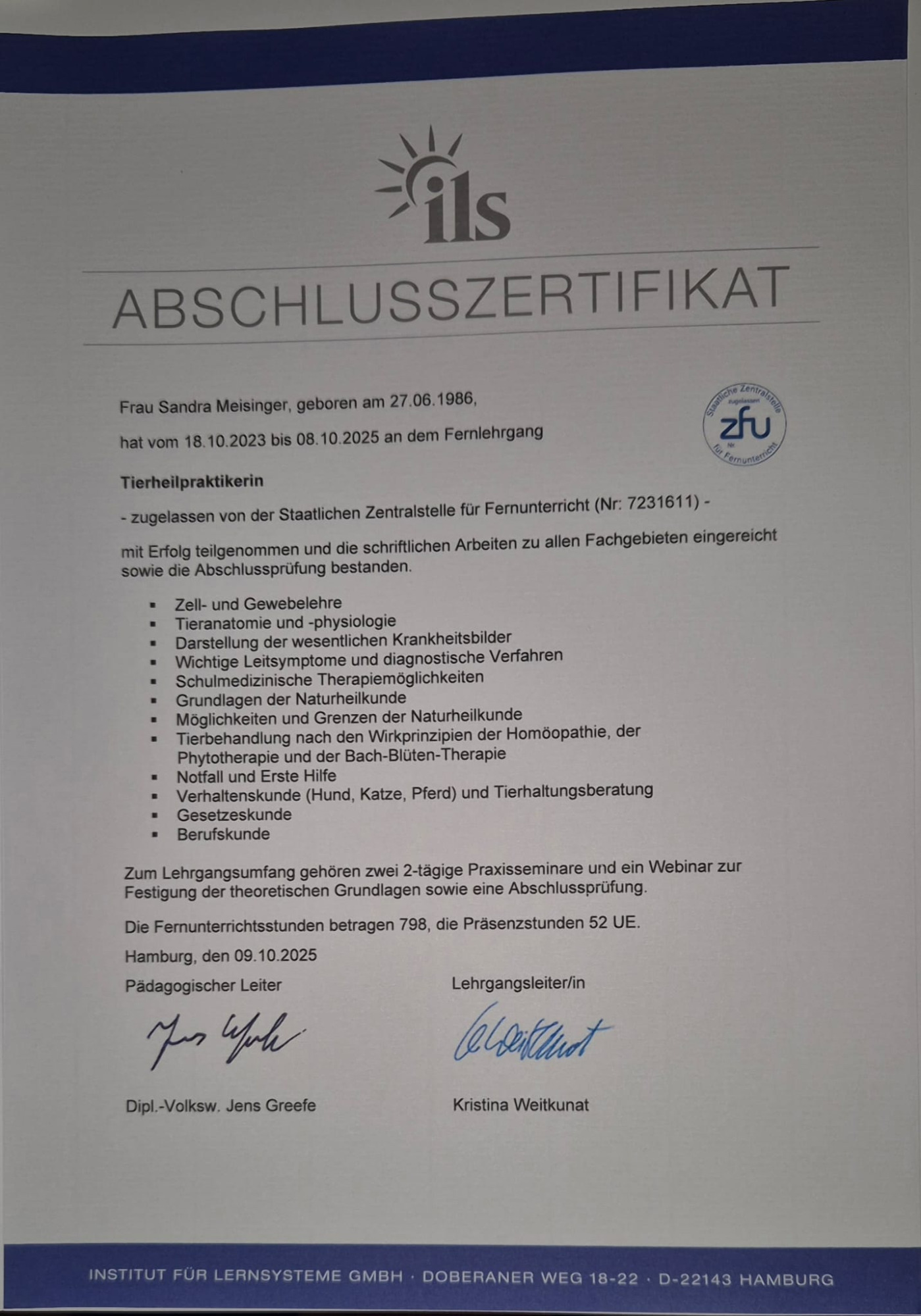 -10.2025 Ausbildung zur Tierheilpraktikerin