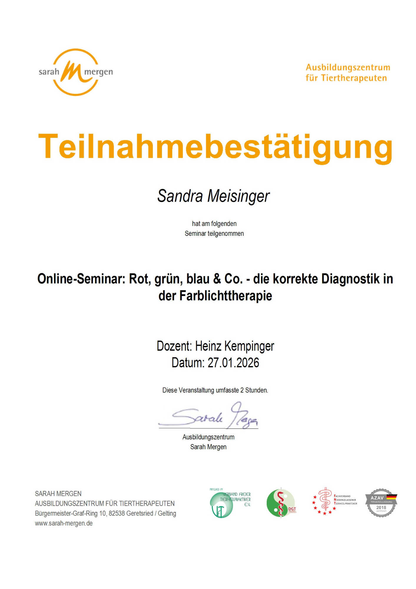 Nach und nach kommen hier meine Zertifikate und Teilnahmebestätigungen rein.